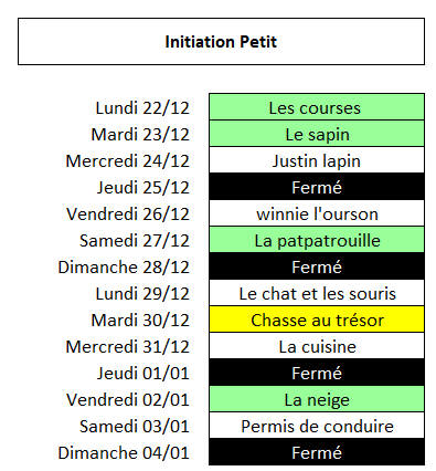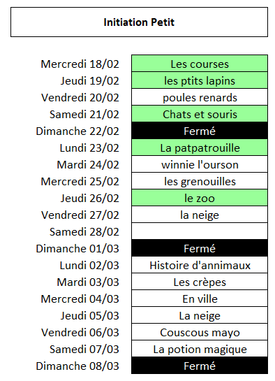 - Apres réservation, les horaires sont communiqués par sms le week end précédent l’activité.